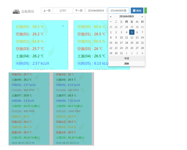 清單明細式顯示方式,可以直觀地查看各個環(huán)境因素參數在某個時間點的監(jiān)測數據。