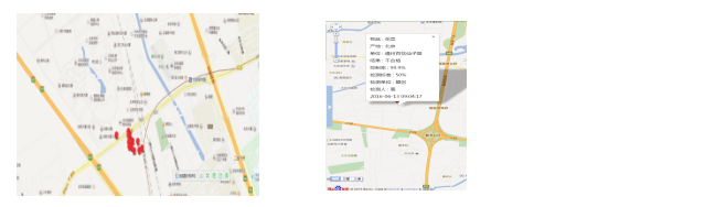 6、GIS地圖生成:利用檢測設備內置的GPS模塊,實現衛(wèi)星定位數據捆綁測試數據信息,實施GIS地圖定點監(jiān)控個檢測點的位置信息,監(jiān)測者可在其衛(wèi)星定位圖標上點擊位置坐標查看該檢測點測試數據相關索引信息。