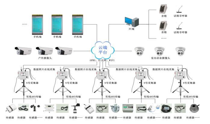 由本系統(tǒng)主要由云平臺(tái)無(wú)線數(shù)劇采集器、傳感器、、視頻采集系統(tǒng)、圖片拍照系統(tǒng)、云平臺(tái)組成。后臺(tái)數(shù)據(jù)處理系統(tǒng)及信息監(jiān)控管理云平臺(tái)、數(shù)據(jù)采集器、傳感器、視頻監(jiān)控系統(tǒng)、無(wú)線傳輸系統(tǒng)組成。監(jiān)測(cè)子站集成(無(wú)上限要求);數(shù)據(jù)平臺(tái)是一個(gè)互聯(lián)網(wǎng)架構(gòu)的網(wǎng)絡(luò)化平臺(tái),具有對(duì)各子站的監(jiān)控功能以及對(duì)數(shù)據(jù)的報(bào)警處理、記錄、查詢、統(tǒng)計(jì)、報(bào)表輸出等多種功能。