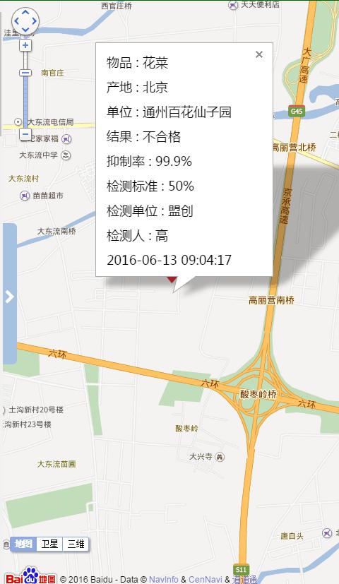 10、GIS地圖生成:利用檢測(cè)設(shè)備內(nèi)置的GPS模塊,實(shí)現(xiàn)衛(wèi)星定位數(shù)據(jù)捆綁測(cè)試數(shù)據(jù)信息,實(shí)施GIS地圖定點(diǎn)監(jiān)控每個(gè)檢測(cè)點(diǎn)的位置信息,監(jiān)測(cè)者可在其衛(wèi)星定位圖標(biāo)上點(diǎn)擊位置坐標(biāo)查看該檢測(cè)點(diǎn)測(cè)試數(shù)據(jù)相關(guān)索引信息。