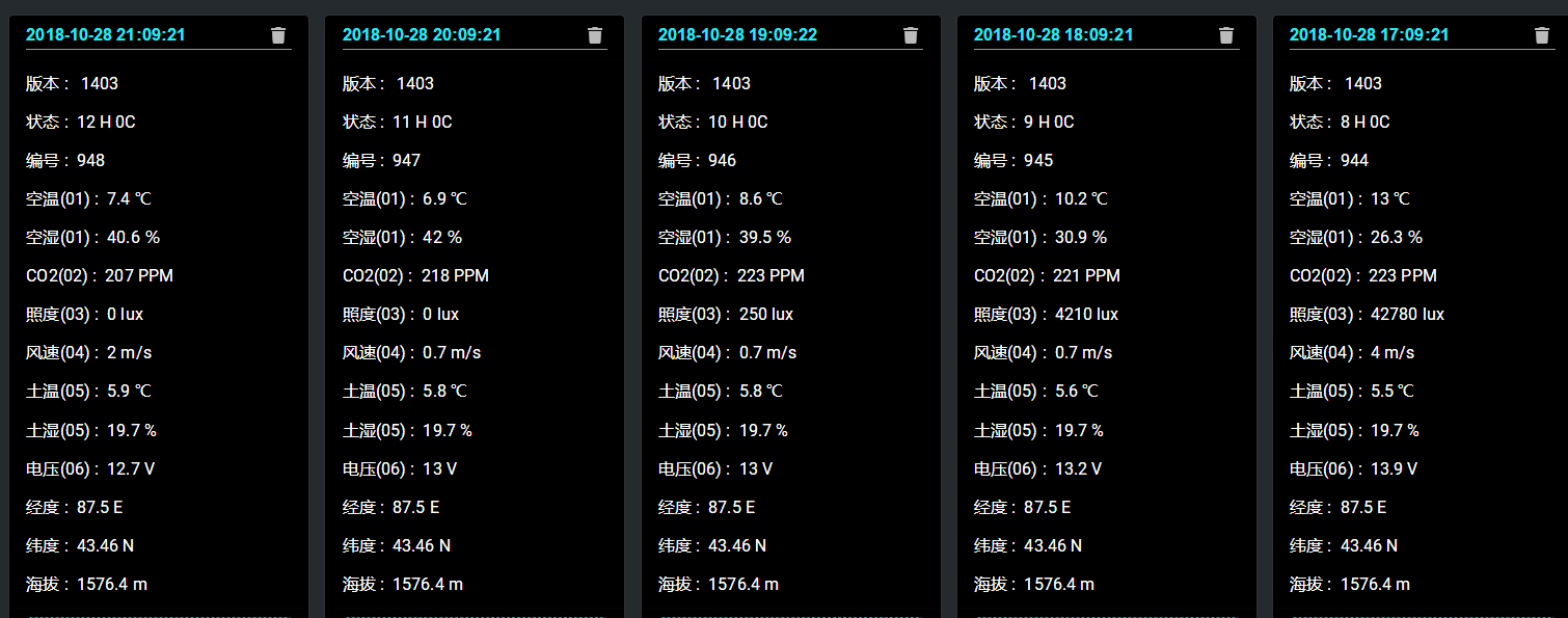清單明細(xì)式顯示方式,可以直觀地查看各個(gè)環(huán)境因素參數(shù)在某個(gè)時(shí)間點(diǎn)的監(jiān)測(cè)數(shù)據(jù)。