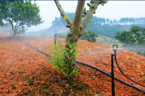 借助水路壓力系統(tǒng),將可溶性固體丶溶解藥物丶液體肥料加入肥料罐,通過施肥機自動配比然后均勻、定時、定量隨水施肥打藥。