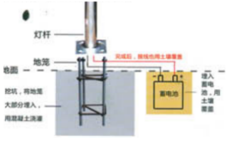 5、蓄電池采用地膠式,防水型密封箱體,埋藏于地下,避免水淹,防盜。